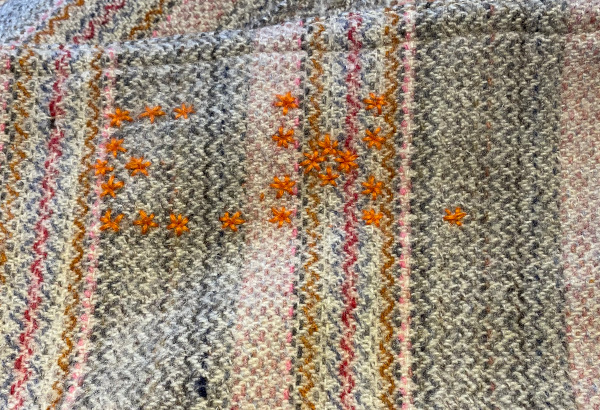 Initials can been seen embroidered in one corner E H.  - Elin Hughes ?
