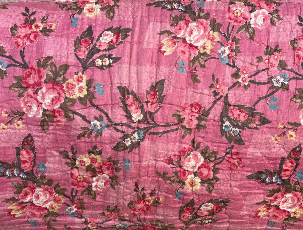 Two lovely fabrics . Pink floral centre , paisley with amber and lavender for the outer border.