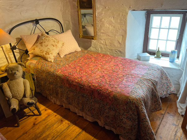 Traditional Welsh quilting . Naive central coin with tram line border.